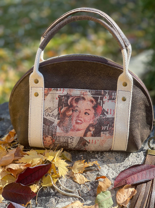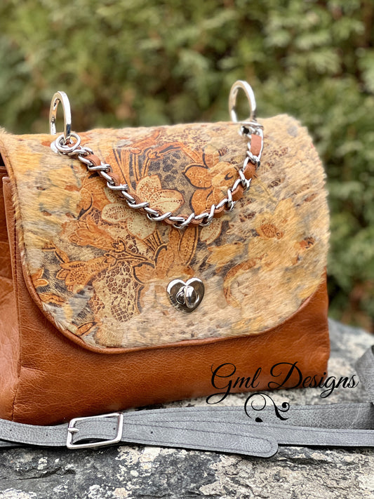 Printed Hair on Hide & Distressed Leather Puffin Handbag